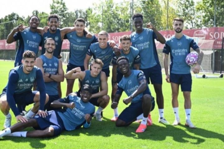 笑不出来😭阿森纳训练赢球小队全员笑容灿烂,法维却宛若局外人